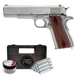 A Pistola Airgun SA 1911 Cromada BlowBack 4,5mm Co2 Kit dispara no modo Semi Automática com velocidade de 330fps - 101m/s e energia de 1,8 Joules Ver mais