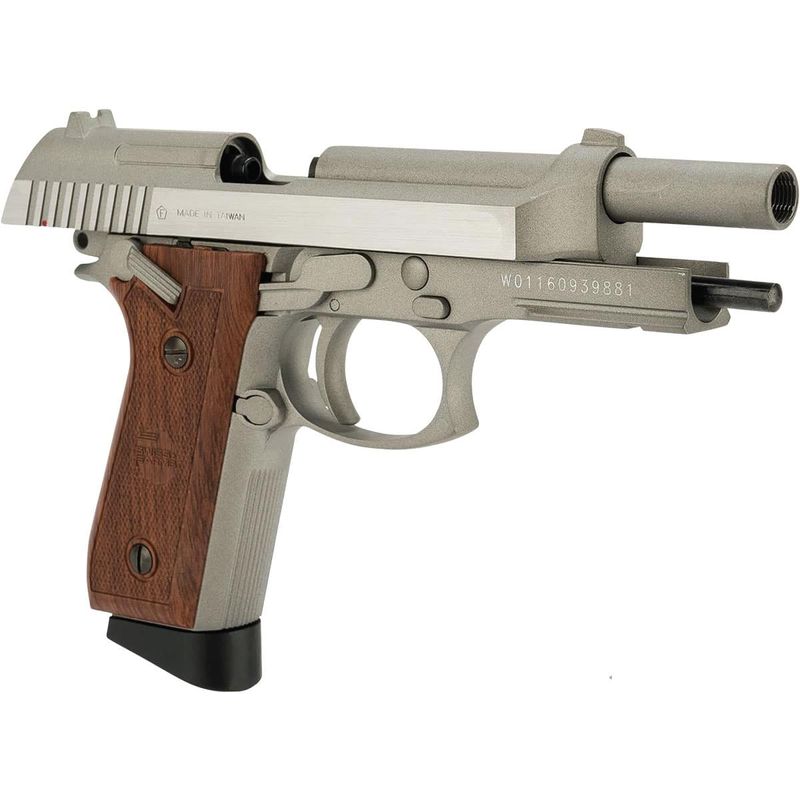 Como já foi falado, o que mais impressiona nessa pistola é seu realismo. A Swiss Arms 92 Stainless é fabricada toda em metal e possui um blowback realístico, com sistema de desmontagem em primeiro escalão exatamente como as pistolas Taurus/Beretta.