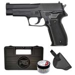 A Pistola Airgun Sig Sauer P226 Mola 4,5mm Metal KWC + Coldre dispara no modo Um a um com velocidade de 190fps - 58m/s e energia de 0,6 Joules Ver mais