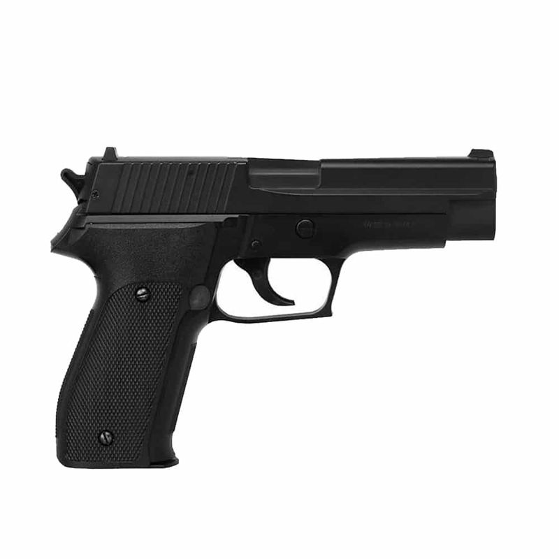 A Pistola Sig Sauer P226 Spring da KWC é uma pistola de mola que não exige cilindros de CO2, gás ou outro propulsor para funcionar. Basta puxar o ferrolho/slide da arma para trás para atirar as esferas de aço 4,5mm.