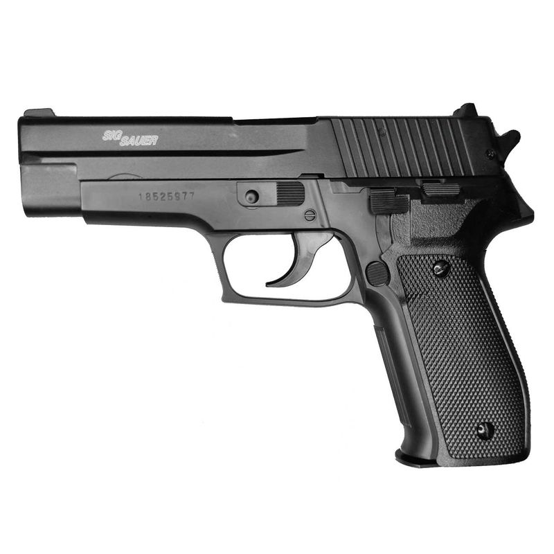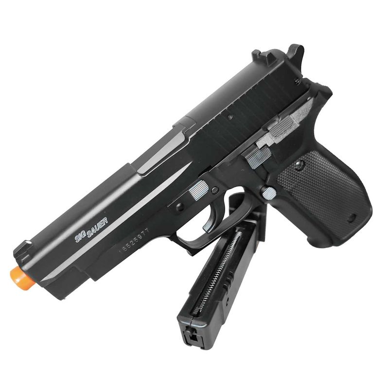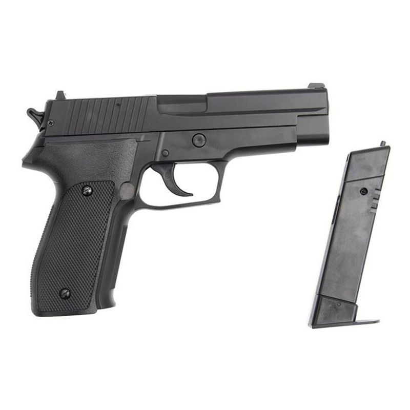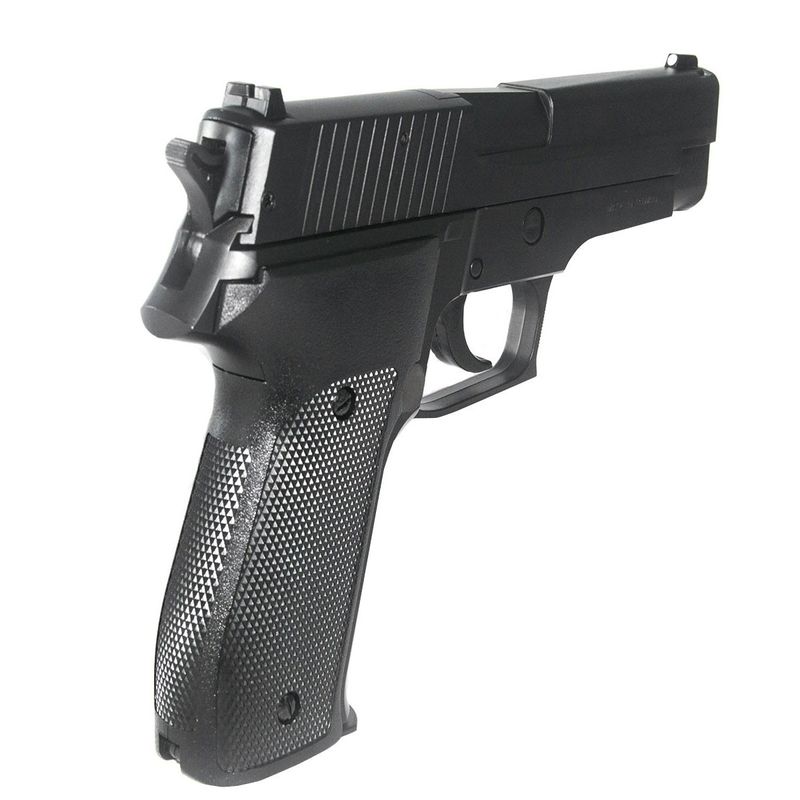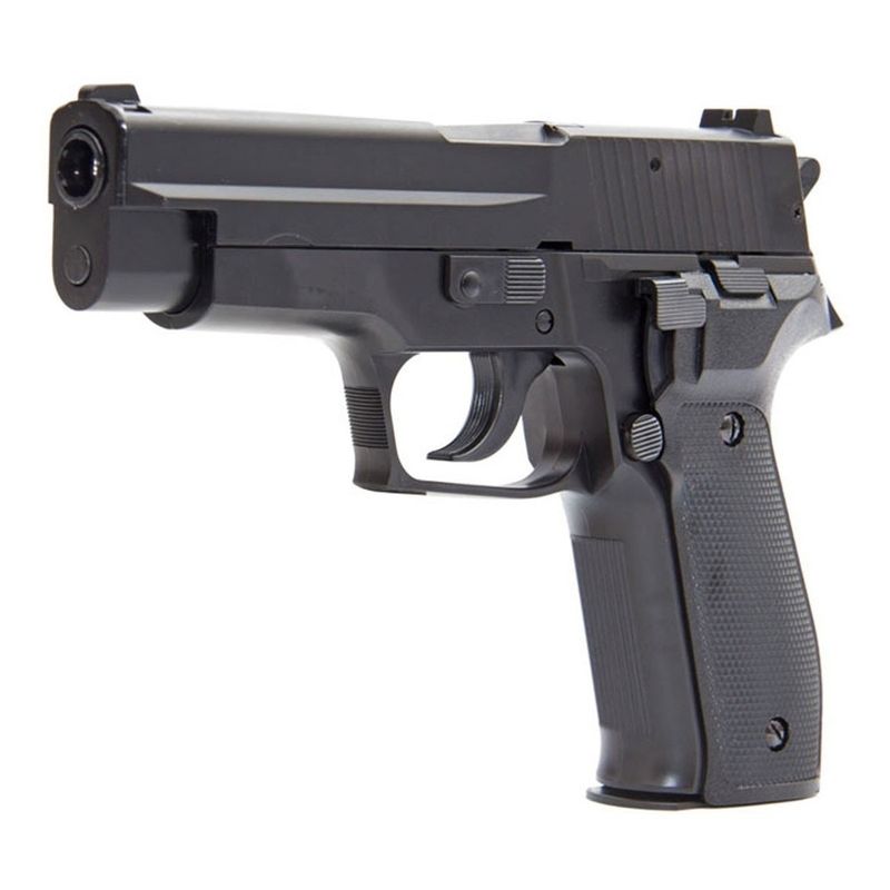 A Pistola Sig Sauer P226 Mola da Cyber Gun é uma pistola de mola que não exige cilindros de co2, gás ou outro propulsor para funcionar. Basta puxar o ferrolho/slide da arma para trás para atiras as esferas de aço 4,5mm