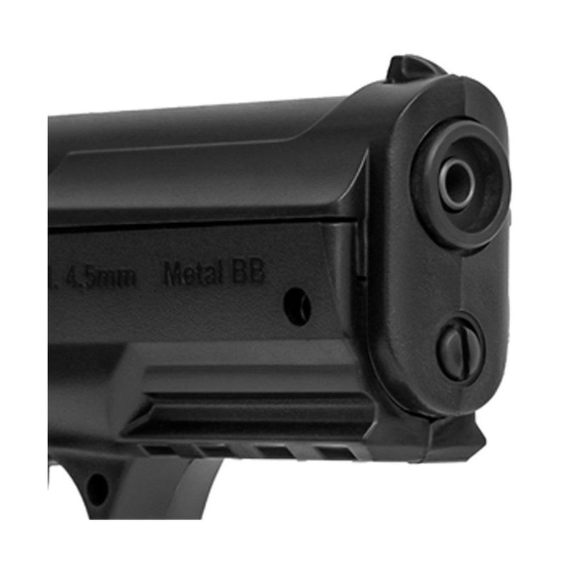 Essa pistola atira esferas de aço 4,5mm. Não se trata de uma pistola airsoft, já que não atira esferas de plástico. Ela possui uma velocidade de 19ofps (58m/s) e uma força de 0,6 Joules e é necessário cuidado para atirar, já que as esferas podem machucar.