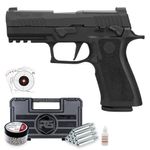 A Pistola Airgun Sig Sauer P320 X-Carry Co2 Blowback Kit dispara no modo Semi Automática com velocidade de 350fps - 107m/s e energia de 3 Joules Ver mais