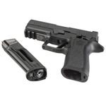 Blowback poderoso: O sistema de blowback com recuo do ferrolho simula o funcionamento de uma arma real, proporcionando um feedback autêntico a cada disparo. Construção robusta: Oferrolho em metal full metal slidegarante durabilidade e uma sensação realista ao manuseio. Pronta para Red Dot: O designoptic-readypermite a instalação doSIG AIR Reflex Sight, otimizando velocidade e precisão. Controles ambidestros: O design ergonômico incluitrava de segurança e retên do ferrolho ambidestros, adaptando-se a destros e canhotos. Gatilho X-Flat: Equipado com um gatilho reto com quebra a 90º, proporcionando uma resposta rápida e precisa. Capacidade ampliada: Carregador metálico para21 esferas de aço, reduzindo a necessidade de recarga frequente. Trilho Picatinny (M1913): Permite a instalação de lanternas e outros acessórios táticos. Realismo total: A P320 X-Carry Airgun pode ser desmontada como uma arma real, sendo ideal para treinamentos de manuseio e segurança.