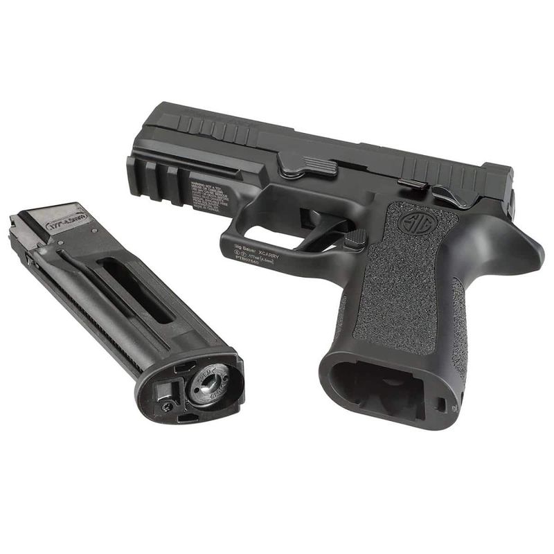 A Pistola Airgun SIG SAUER P320 X-Carry CO2 Blowback é uma fiel reprodução do modelo original P320 X-Carry 9mm, oferecendo uma experiência de tiro realista para entusiastas e atiradores que buscam um equipamento de alto desempenho. Fabricada pela renomada SIG SAUER, esta pistola de pressão calibre 4,5mm (.177 cal)dispara esferas de aço com excelente precisão e realismo, sendo uma excelente opção tanto para treinamentos quanto para lazer.