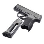 Com um magazine para 20 esferas de aço 4,5mm e autonomia de até 60 tiros por cápsula de CO2, é uma das pistolas mais compactas e práticas da linha de Airguns Sig Sauer.