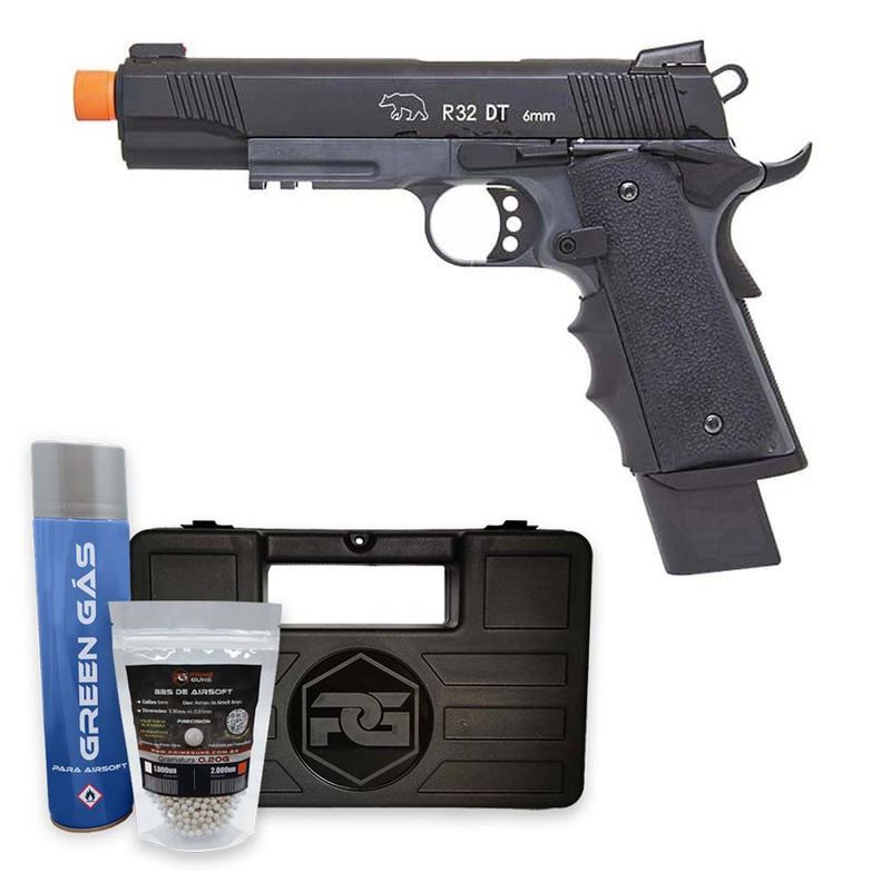 KIT COM PISTOLA + MALETA DE TRANSPORTE + 2.000 BBs DE AIRSOFT 0.20g + GREEN GÁS
