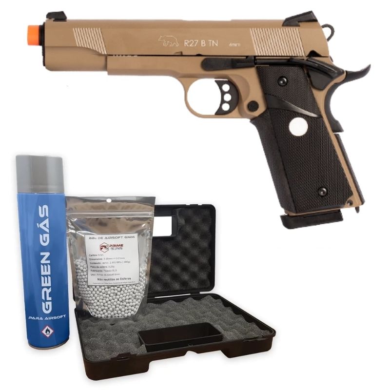 Pistola Airsoft 1911 MEU Full Metal TAN GBB Army 6mm Kit