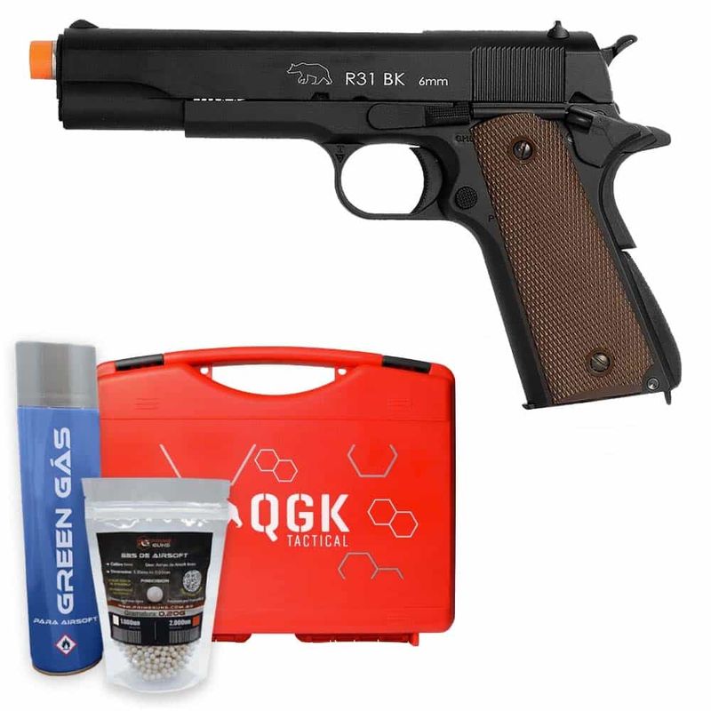 Pistola Airsoft 1911 R31 BK Full Metal Blowback Army 6mm Kit