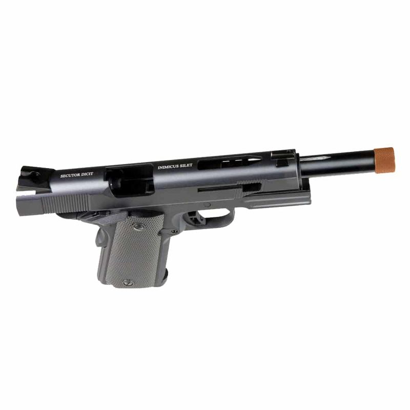 Buscando a mais perfeita qualidade, a Secutor Arms desenvolveu a pistola Rudis Modelo XI que, além de utilizar o projeto mais fiel e com materiais de alta qualidade, possui um acabamento impecável, com aberturas laterais no ferrolho.