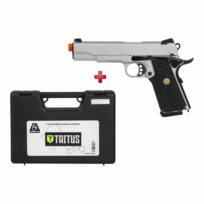 Já em sua versão de airsoft, a pistola 1911 Silver da Double Bell é um verdadeiro destaque no mundo de airsoft, uma vez que possui um projeto surpreendente e de custo acessível.