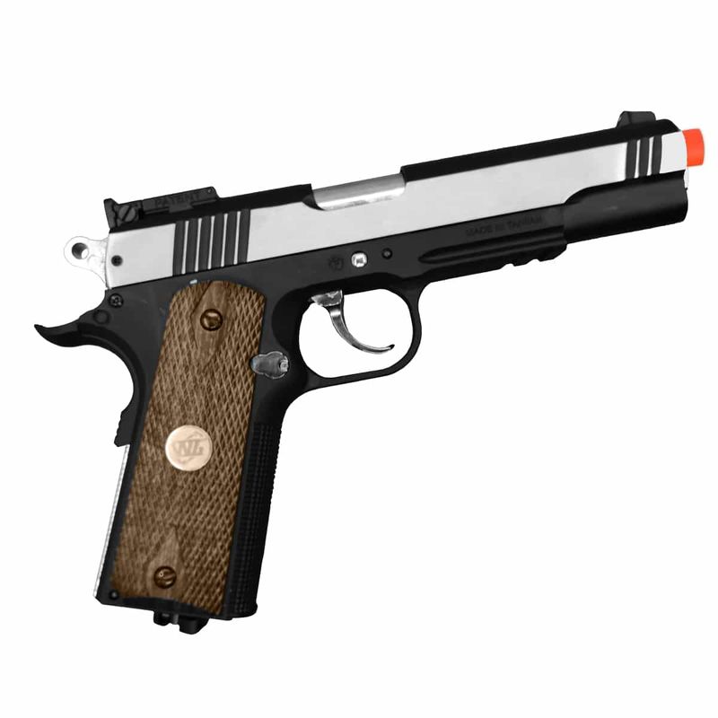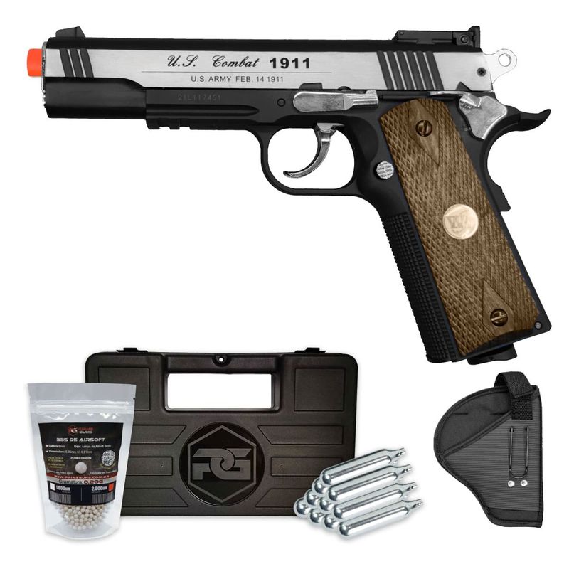 A Pistola Airsoft 1911 Special Combat WG 6mm Metal Slide + Coldre dispara no modo Semi Automática com velocidade de 459fps - 140m/s e energia de 2 Joules Ver mais