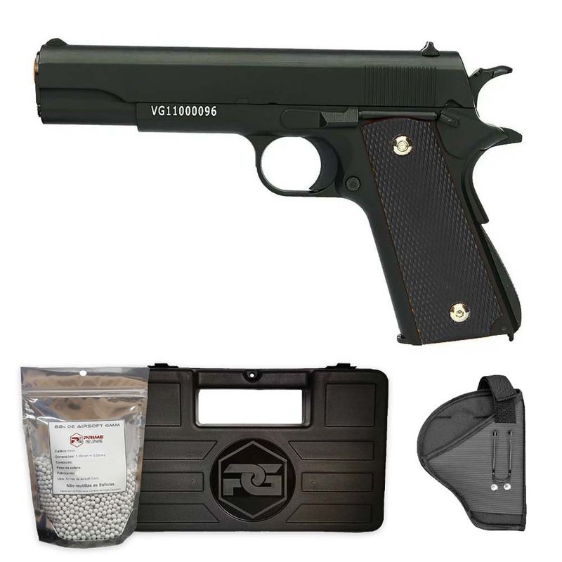 Pistola Airsoft 1911 V14 BK Full Metal Spring 6mm + Coldre