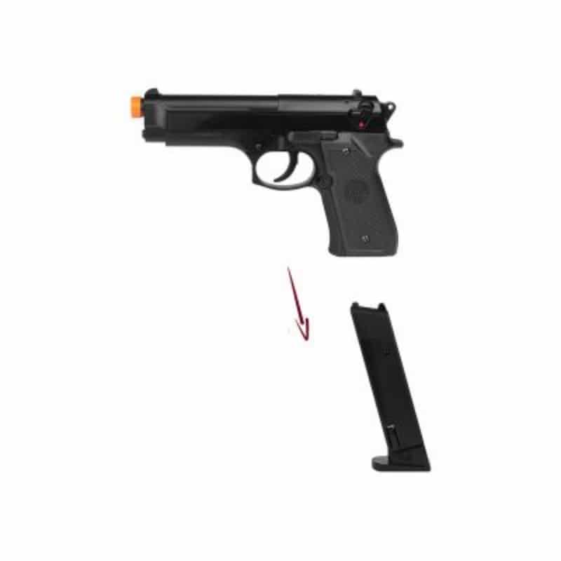 A capacidade padrão para Pistola Beretta M92 6mm é de 12 BBs de plástico.