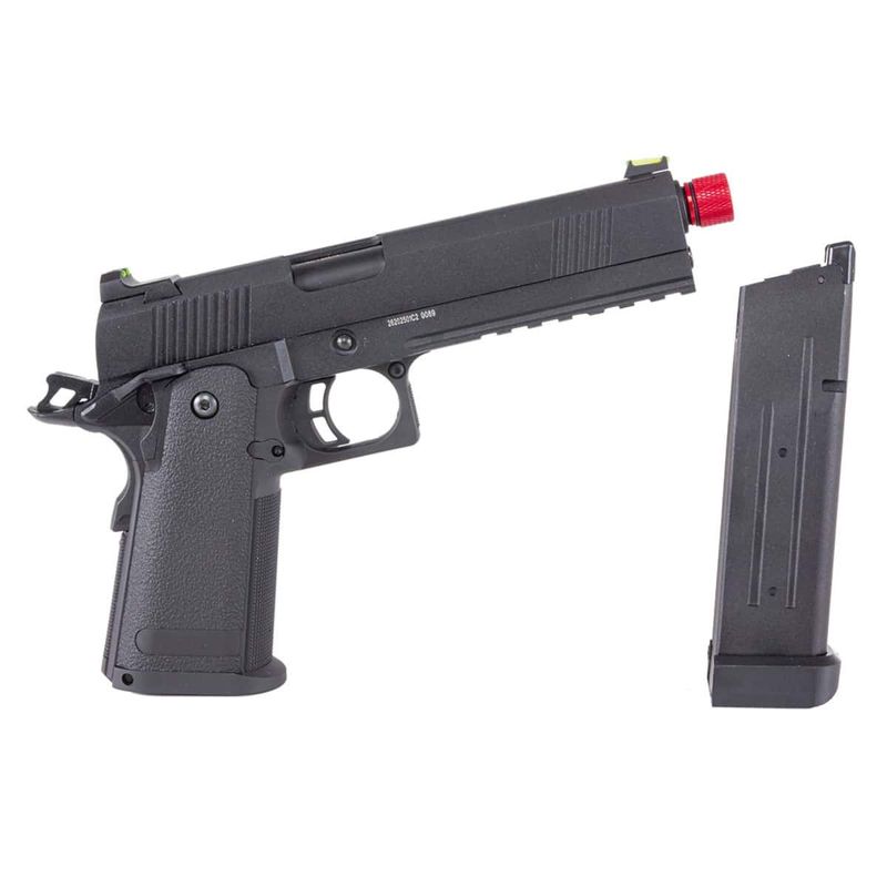 Com sistema GBB (Gás Blowback), ela oferece um recuo firme e realista a cada disparo. A alimentação é feita por um magazine a gás com capacidade para 24 BBs calibre 6mm, e seu consumo de gás é otimizado, tornando-a econômica durante o uso.