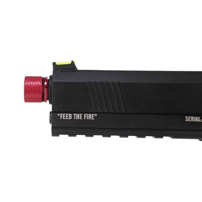Fabricada em metal com partes em nylon, a TAG Hi-Capa 5.1 Black Evil possui um peso equilibrado e ótima ergonomia.