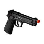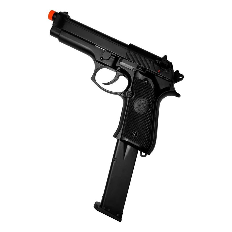 O modelo conta ainda com travas funcionais de gatilho e ferrolho, fiéis ao padrão da M92, agregando segurança ao manuseio e fidelidade operacional. Possui também ferrolho desmontável, facilitando a manutenção e a limpeza. As miras fixas proporcionam visada rápida e direta, ideais para ambientes de jogo dinâmicos.