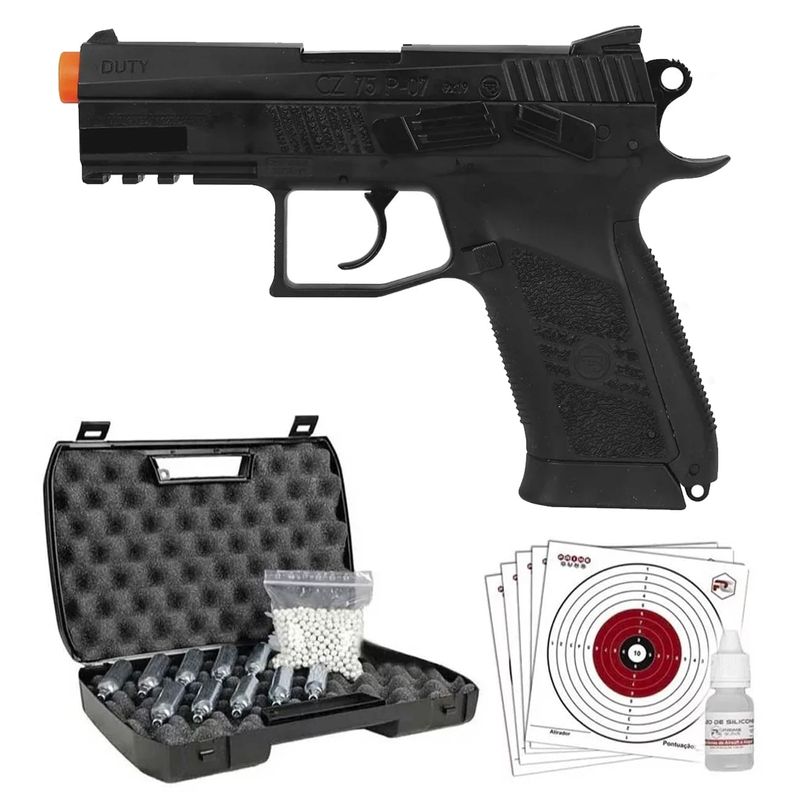 ArmasArmas de AirsoftPistola GBB e Co2Armas Curtas: Pistola e RevólverPistola Airsoft CZ75 P-07 Duty ASG CO2 Blowback 6mm Kit