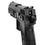 Seu peso de 724g e estrutura com slide metálico proporcionam equilíbrio ideal para manuseio e tiros mais precisos.