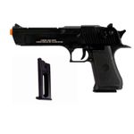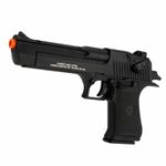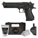 A Pistola Airsoft Desert Eagle .50 Metal CO2 Full Auto + Coldre dispara no modo Semi e Full Automática com velocidade de 358fps - 109m/s e energia de 1,9 Joules Ver mais