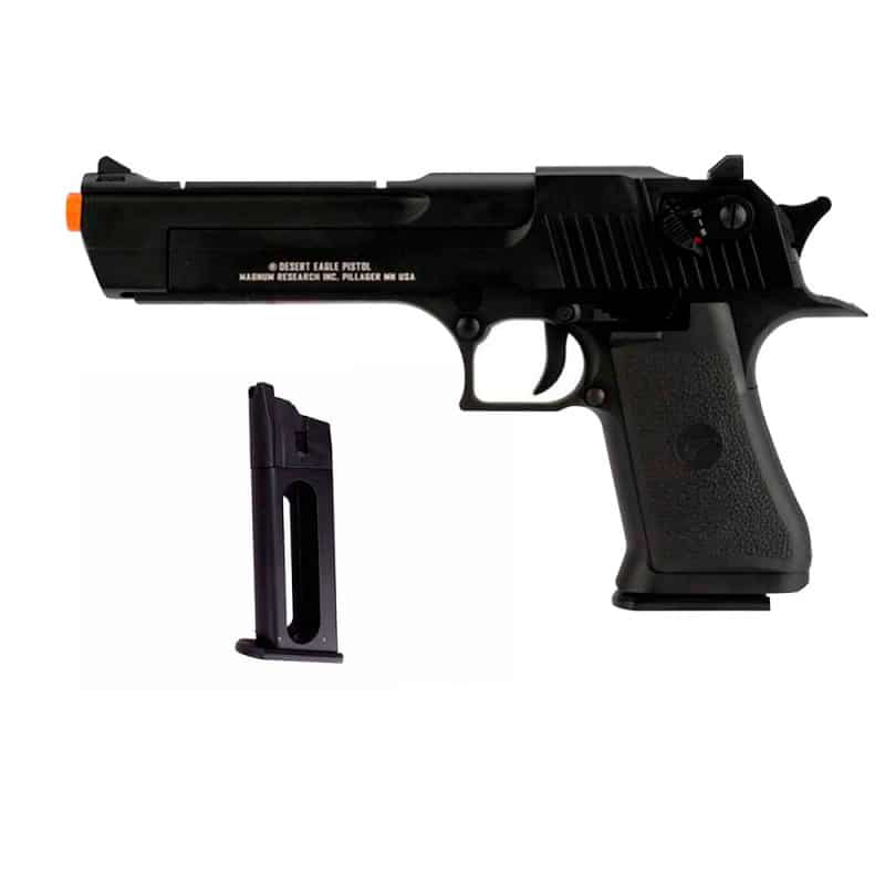 Com ótima capacidade, a Desert Eagle CO2 GBB suporta até 21 esferas de plástico em seu magazine de metal.