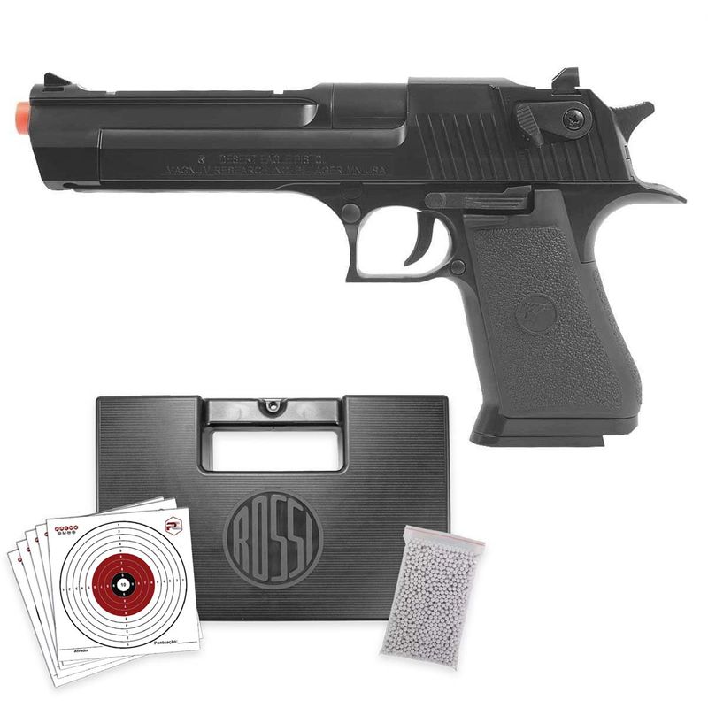 A Pistola Airsoft Desert Eagle .50AE BAX Spring 6mm + Case dispara no modo Repetição com velocidade de 230fps - 70m/s e energia de 3 Joules Ver mais