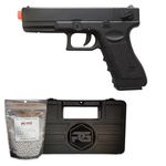 Esta réplica da Glock G18C Airsoft 6mm tem bom aproveitamento de alcance na faixa dos 10-20 metros, com saída da munição estimada na velocidade de 200 fps / 60 m/s usando BBs de plástico de 0.20g, podendo até chegar a maiores velocidades com munições mais leves. O alcance máximo pode chegar aos 30 metros com BBs 0.12g. Sua capacidade é de 27 BB's no carregador.