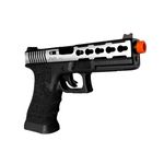 Equipada com sistema GBB – Gas Blowback, a G17-74L entrega uma experiência muito mais imersiva, com recuo realista do ferrolho a cada disparo, simulando fielmente o funcionamento de uma pistola real. Seu funcionamento com Green Gás garante boa ciclagem do slide, disparos consistentes e maior durabilidade do conjunto mecânico.
