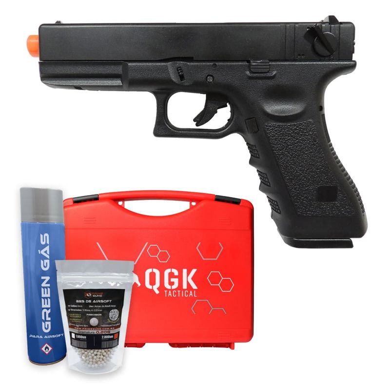 Fabricada pela Army Armament e distribuída pela QGK, a pistola é inspirada na famosa Glock 18C. Possui corpo em polímero de alta resistência e slide em metal funcional (full metal slide), entregando peso realista e maior durabilidade.