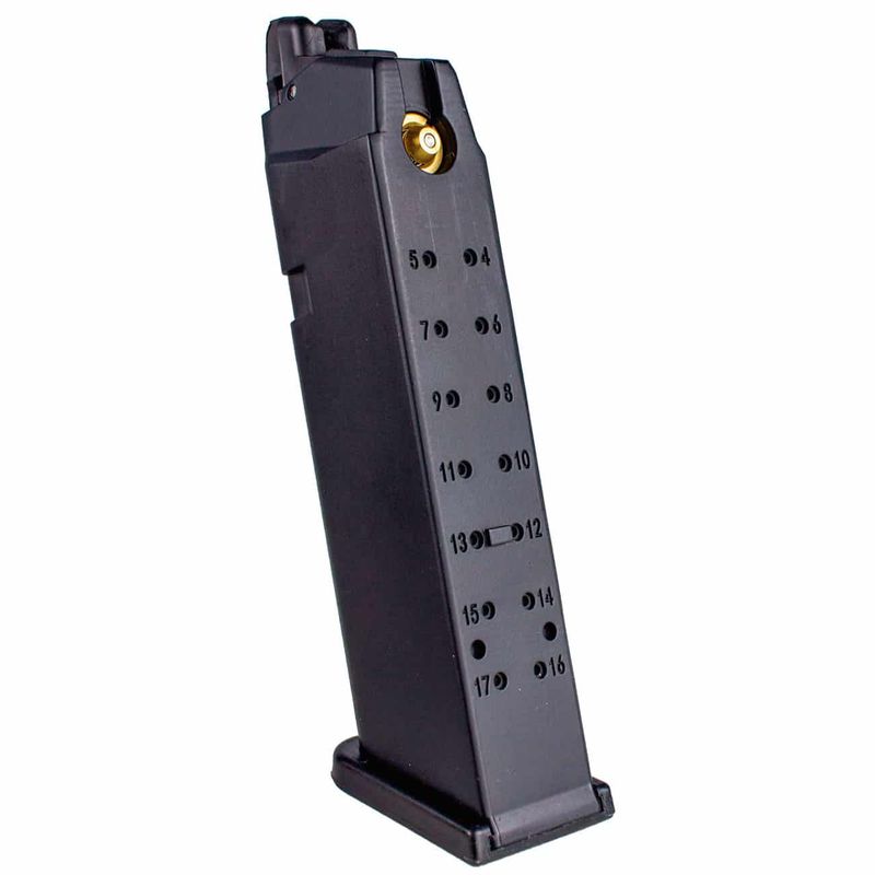 A Pistola Glock 17 da Rossi R17 possui um magazine com capacidade para 20 BBs de airsoft.