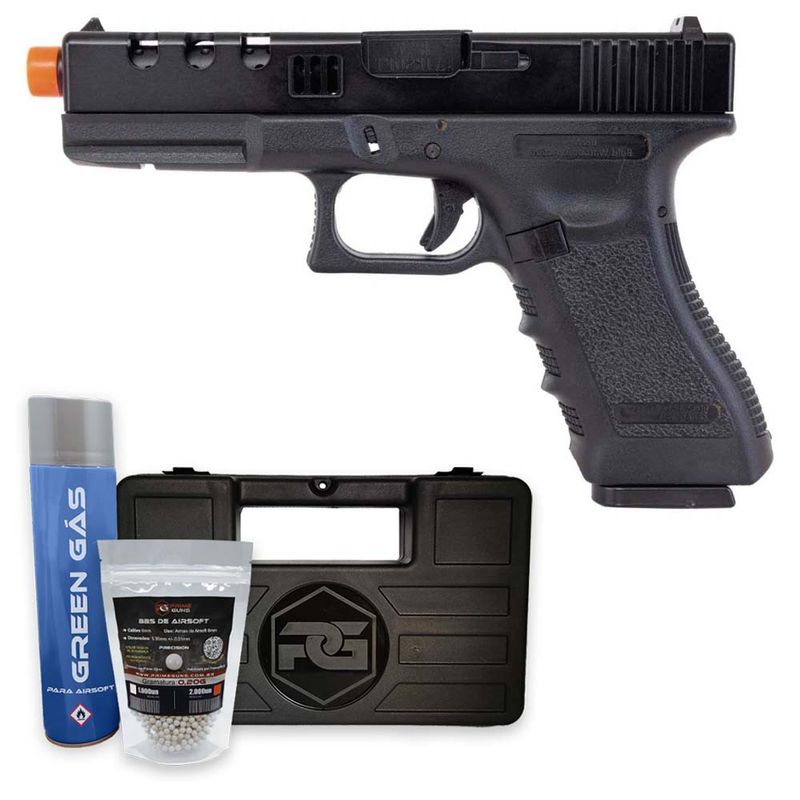 A pistola Glock G17 Tatical é uma airsoft GBB, com ação por Green Gás (Gás Propano com silicone), onde seu carregamento é simples, fácil e rápido, aplicando o gás diretamente no magazine.