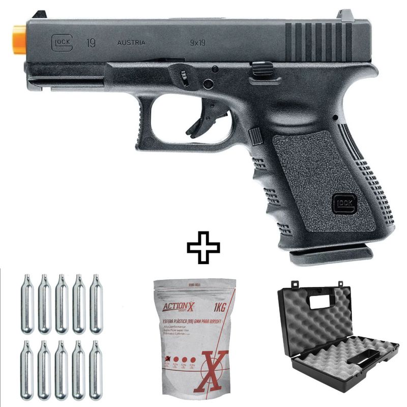 Pistola Airsoft Glock G19 Umarex Co2 6mm Kit