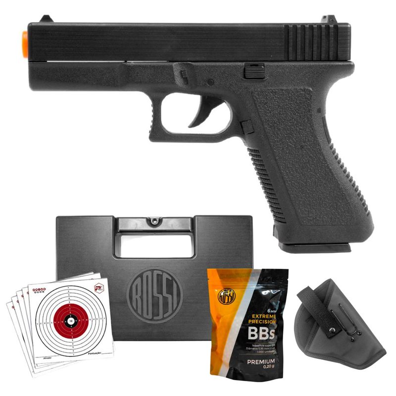 A Glock G17 Airsoft Spring tem um design ergonômico adequado tanto para usuários destros quanto para canhotos. Possui Slide/Ferrolho em metal com corpo e carregador em polímero de alta rigidez e conforto, o que confere à arma de pressão maior robustez e um peso equilibrado de 230g, o que também fornece ao usuário uma sensação de realismo. A configuração de construção e materiais empregados na parte externa é exatamente como na Pistola Glock real.