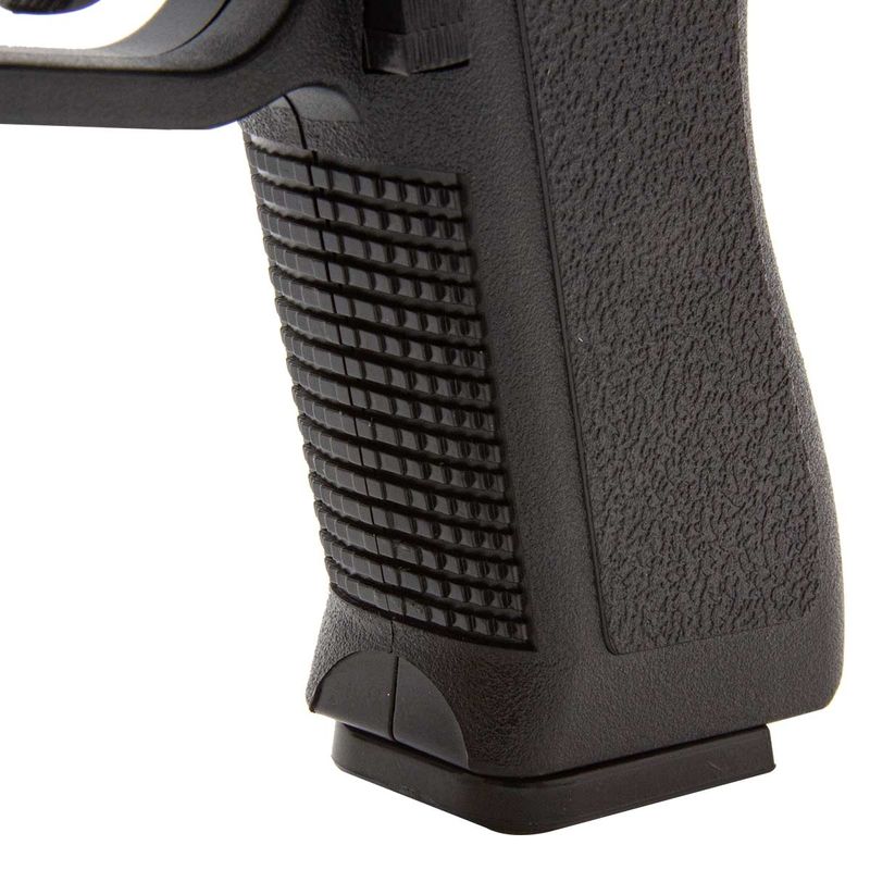 A Glock G17 Airsoft Spring tem um design ergonômico adequado tanto para usuários destros quanto para canhotos. Possui Slide/Ferrolho em metal com corpo e carregador em polímero de alta rigidez e conforto, o que confere à arma de pressão maior robustez e um peso equilibrado de 230g, o que também fornece ao usuário uma sensação de realismo. A configuração de construção e materiais empregados na parte externa é exatamente como na Pistola Glock real.