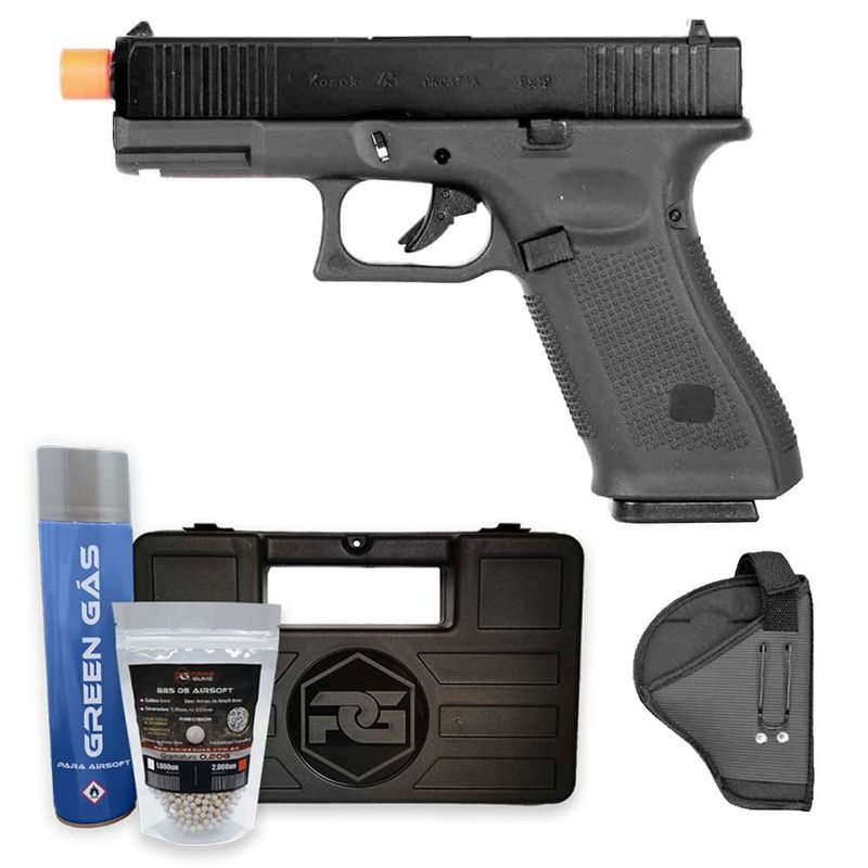 Essa airsoft Glock 45 possui velocidade média de 330fps (100m/s) com BBs .20g.