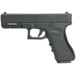 A Glock G17 Airsoft Spring tem um design ergonômico adequado tanto para usuários destros quanto para canhotos. Possui Slide/Ferrolho em metal com corpo e carregador em polímero de alta rigidez e conforto, o que confere à arma de pressão maior robustez e um peso equilibrado de 400g, o que também fornece ao usuário uma sensação de realismo. A configuração de construção e materiais empregados na parte externa é exatamente como na Pistola Glock real.