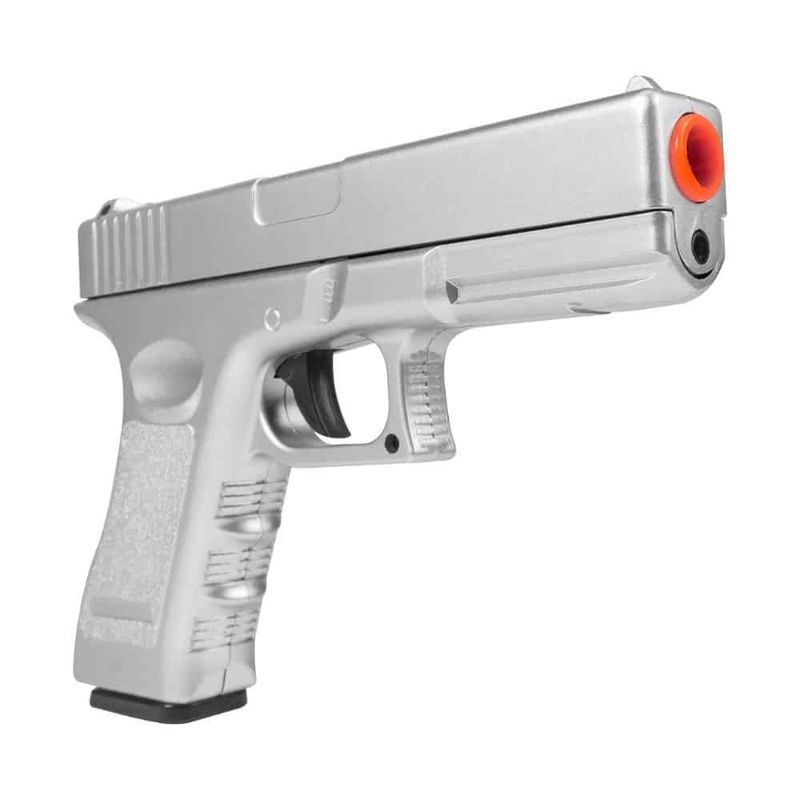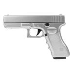 A Glock G17 Prata Airsoft Spring tem um design ergonômico, adequado tanto para usuários destros quanto canhotos. Possui slide/ferrolho em metal com corpo e carregador em polímero de alta rigidez e conforto, o que confere à arma maior robustez e um peso equilibrado de 400g, oferecendo ao usuário uma sensação realista. A configuração de construção e materiais empregados na parte externa é fiel à Pistola Glock real.