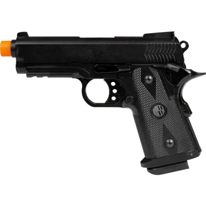 Compacta e eficiente, a pistola entrega 0,6 Joule de potência, ideal para recreação e jogos de airsoft