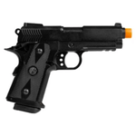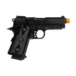 A pistola Rossi Hi-Capa Short é alimentada por Green Gas, proporcionando disparos consistentes e suaves. Seu *trilho Picatinny de 22mm* permite a instalação de acessórios como lanternas e lasers, expandindo suas possibilidades em jogo.