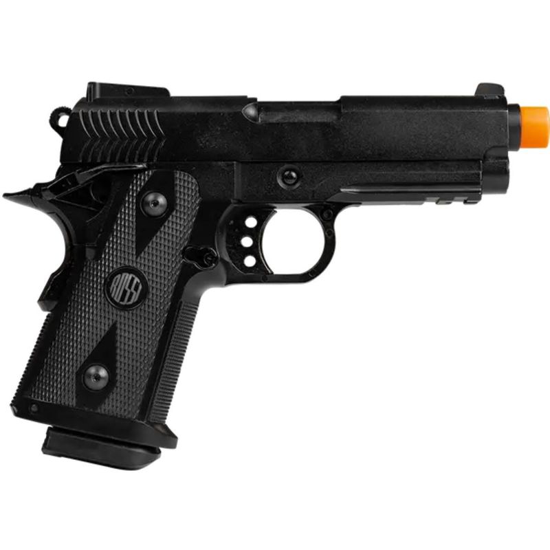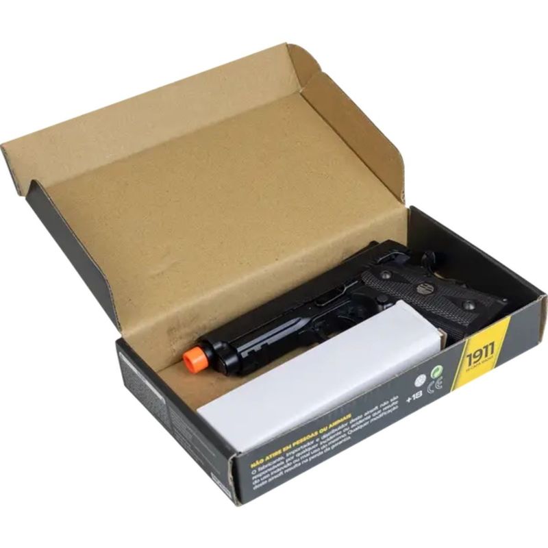 Compacta e eficiente, a pistola entrega 0,6 Joule de potência, ideal para recreação e jogos de airsoft