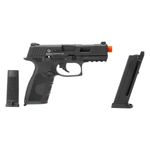 O magazine comporta 19 BBs de 6mm, e a arma inclui trilho inferior de 22mm para a instalação de acessórios como lanternas e miras laser. Conta ainda com travas funcionais, que seguram o slide aberto quando o magazine está vazio, além de hop-up ajustável interno.
