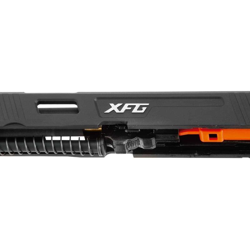 Com 782g, a pistola XFG Black combina slide metálico e corpo em polímero, com excelente acabamento.