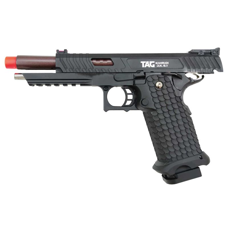 Um verdadeiro canhão de mão, com mais de 23cm de comprimento e 1 kg de peso, a pistola Kahran Hi-Capa 5.1 da TAG é incrível.