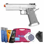 A pistola conta ainda com mira ajustável, empunhadura ergonômica e texturizada, proporcionando pegada firme e confortável. É um modelo muito popular também para uso em tiro IPSC, por ser inspirado na plataforma Hi-Capa STI 2011, com funil de recarga rápida e cano de 5.1 polegadas.