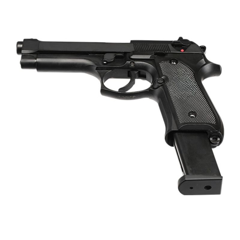 Com 1.140 g, a Double Bell M92 726 transmite robustez e estabilidade nas mãos, favorecendo o controle durante o disparo. Sua estrutura inteiramente metálica aumenta a resistência ao desgaste e valoriza o acabamento do produto, tornando-o também uma excelente opção para colecionadores.