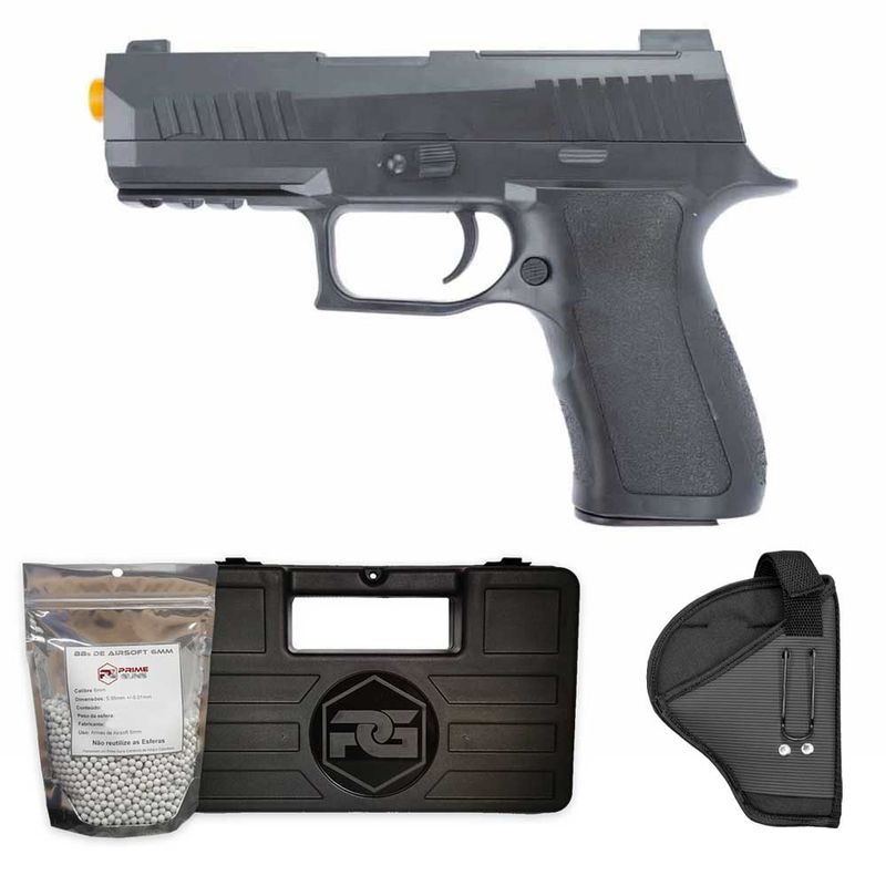 A Pistola Airsoft P320 V311 Vigor Spring 6mm + Coldre dispara no modo Repetição com velocidade de 130fps - 40m/s e energia de 0,2 Joules Ver mais