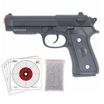 A Pistola Airsoft PT92 V22 possui velocidade média de 160 fps (48 m/s) com BBs de 0.20g.