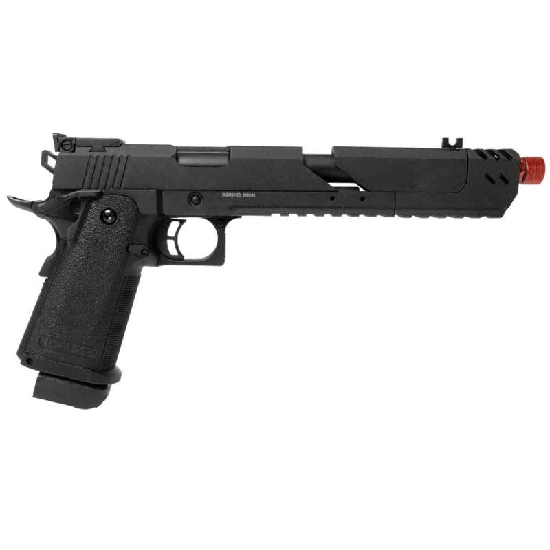 Alimentada por Green Gas, essa pistola alcança uma velocidade de até 312 FPS (95 m/s), sendo perfeita tanto para combates de curta quanto de média distância. Seu modo de disparo semiautomático garante precisão e rapidez nos tiros, enquanto o cano interno de 170 mm em metal assegura estabilidade e precisão em longas distâncias.