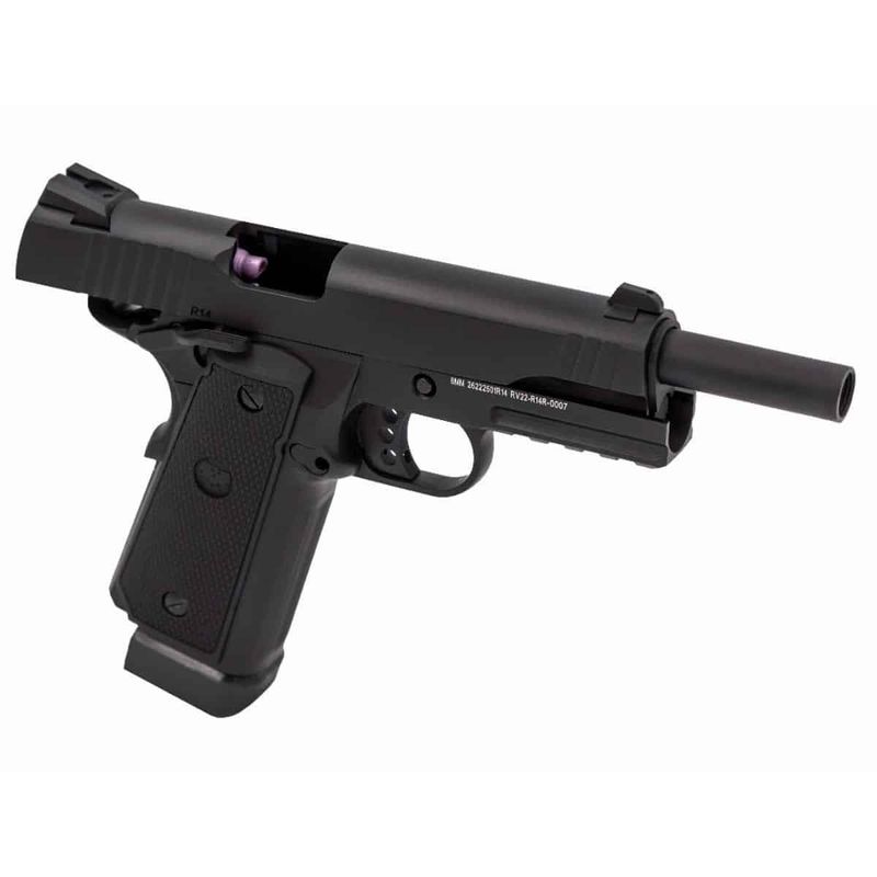 A Pistola Rossi Hi-Capa Black Ops possui uma velocidade de até 300 fps com Green Gás e BBs de 0,20g.