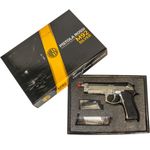 A Pistola Airsoft Rossi M92 Cromada Silver GBB Full Automática Blowback Metal Slide combina alto desempenho, realismo e um design exclusivo com acabamento cromado. Ideal para entusiastas do airsoft, ela entrega uma experiência de tiro autêntica e envolvente, graças ao seu sistema blowback e modos de disparo automático e semiautomático.